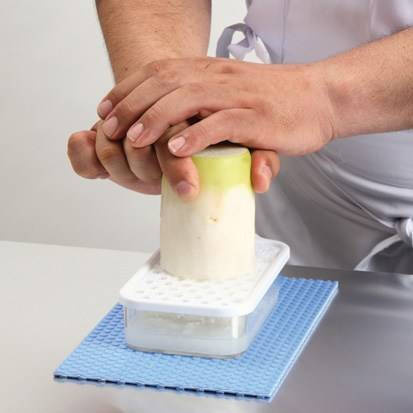 Rozwiązaniem jest mata antypoślizgowa marki Hasegawa. Umieszczając ją pod deską możemy bezpiecznie pracować, nawet jeśli blat jest mokry, a sama deska by się po nim ślizgała. Ponadto powierzchnia, na której przygotowujemy potrawy, nie dotyka bezpośrednio blatu i stanowi dodatkowo barierę dla drobnoustrojów dzięki środkowi antybakteryjnemu. Matę można używać przy wszystkich czynnościach wymagających stabilności np. usuwaniu rybich łusek, rozcieraniu produktów na tarce lub otwieraniu pokrywek słoików.