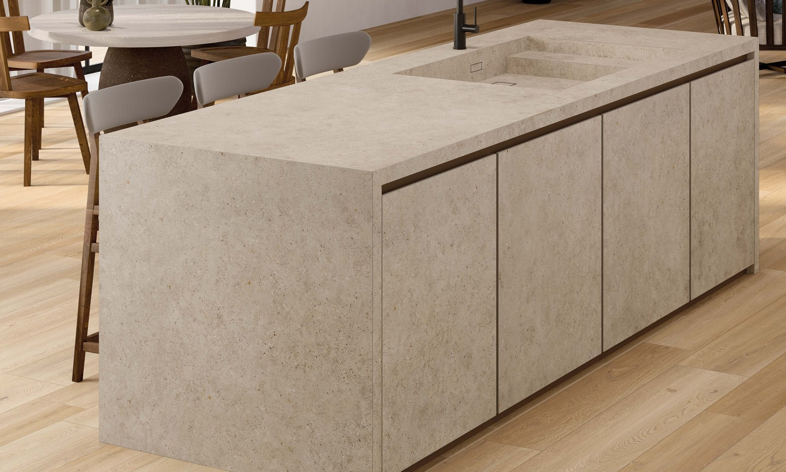Ekskluzywna technologia FullBody 3D to najnowocześniejszy system mieszania i prasowania korpusów ceramicznych, Odtwarza złożoną strukturę materiału skalnego, jego powierzchni i grubości, odwzorowując wiernie wizualny efekt tego, co natura tworzy przez tysiące lat. Wapienna powierzchnia usiana drobnymi kamyczkami łączy się z przemysłową teksturą betonu, idealną do zastosowania w eleganckich, współczesnych przestrzeniach.