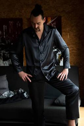 Koszula nocna jedwabna długa bez rękawów Seidenweber Crépe Deep Black