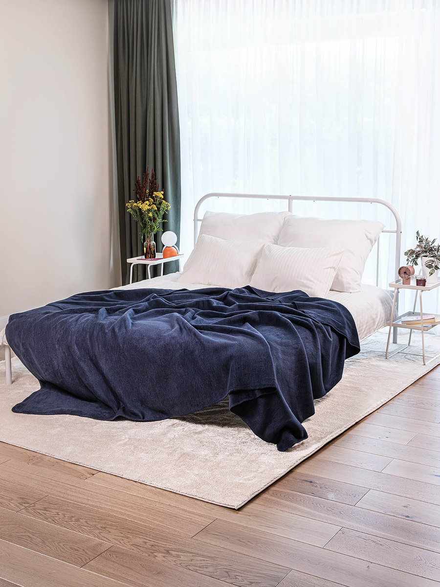 Koc Cotton Cloud XXL o wymiarze 180x220 cm to idealne rozwiązanie dla osób kochających komfort i minimalistyczny design. Miękka, delikatna powierzchnia koca, uzyskana dzięki połączeniu bawełny z akrylem i poliestrem, przyjemnie otula w chłodne dni, zapewniając poczucie ciepła i bezpieczeństwa bez efektu elektryzowania.