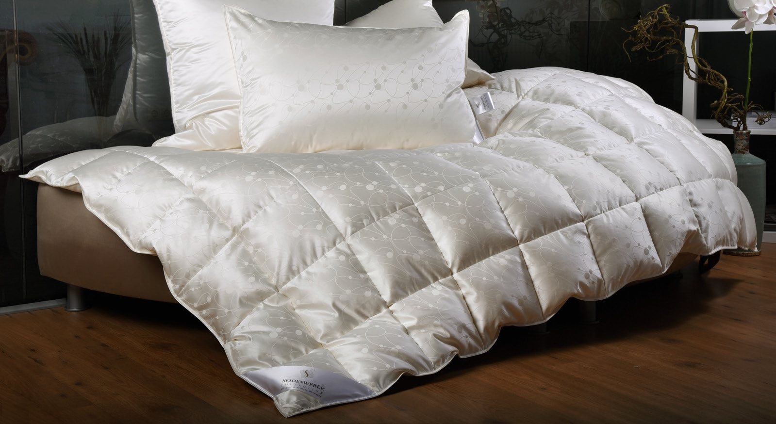 Pielęgnacja: codzienne „potrząsanie” kołdrami Seidenweber rozluźnia puch i pomaga mu wrócić do pierwotnego ułożenia. Zaleca się codzienne wietrzenie oraz unikanie bezpośredniej ekspozycji na światło słoneczne lub wilgotną pogodę. W razie konieczności można przetrzeć obszycie miękką szczotką. Kołdry nie nadają się do prania. Producent poleca profesjonalne czyszczenie chemiczne raz do roku.
