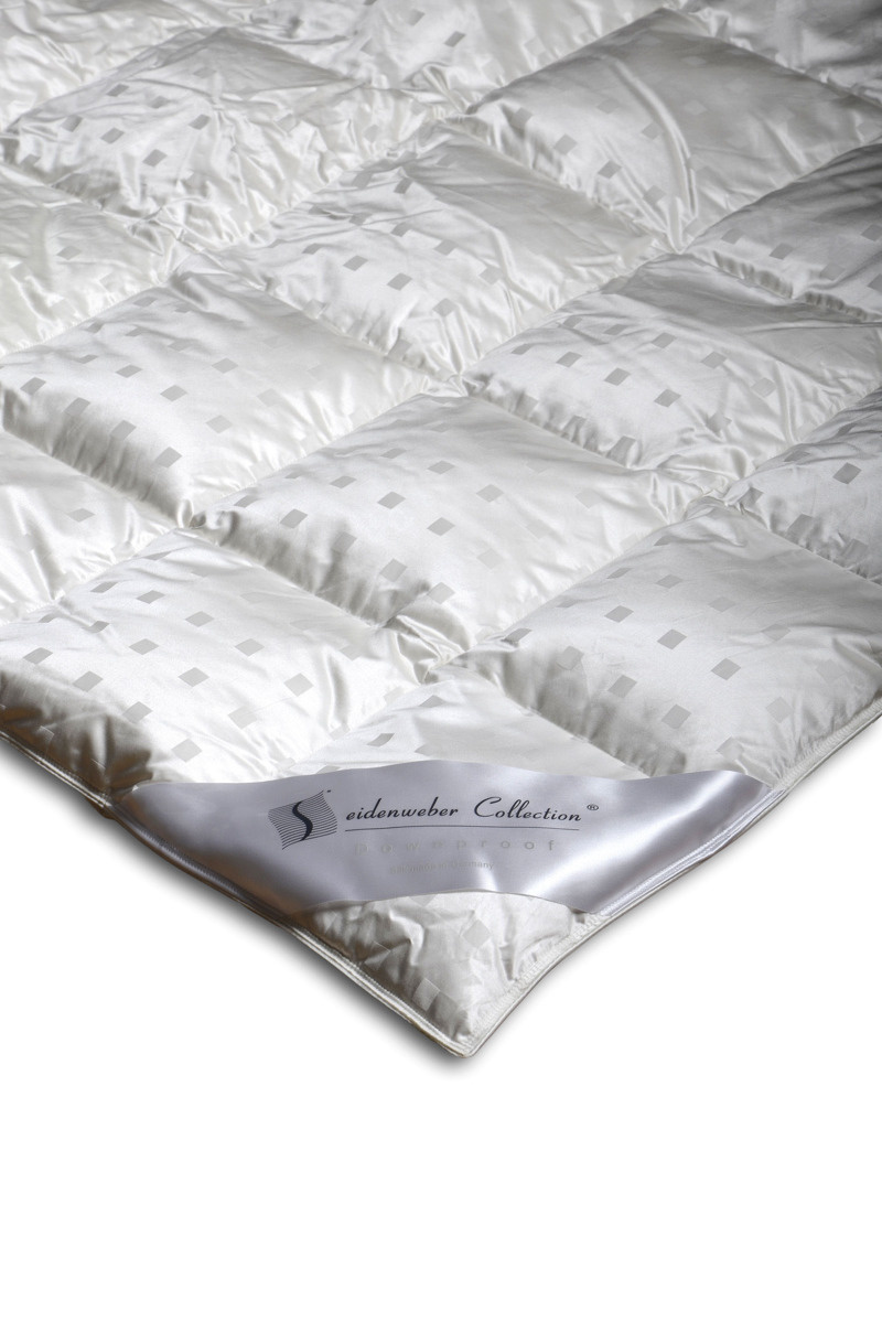 Tkanina jedwabna to najbardziej luksusowy materiał świata. Przez trzy tysiące lat była zazdrośnie strzeżoną tajemnicą chińskich cesarzy. Dopiero w 550 roku dwóm europejskim mnichom udało się przemycić sekret produkcji przędzy na ziemie ukochanego Starego Kontynentu. Od tamtej pory kołdry jedwabne mogą znaleźć się także i w naszych domach. Linia Seidenweber Carre łączy w sobie miękkość, gładkość i połyskliwość jedwabiu, a także największy z jego uroków – wrażenie orzeźwiającego chłodu w dotyku latem i otulającego ciepła zimą. Istnieje możliwość zamówienia kołdry w dowolnym rozmiarze.