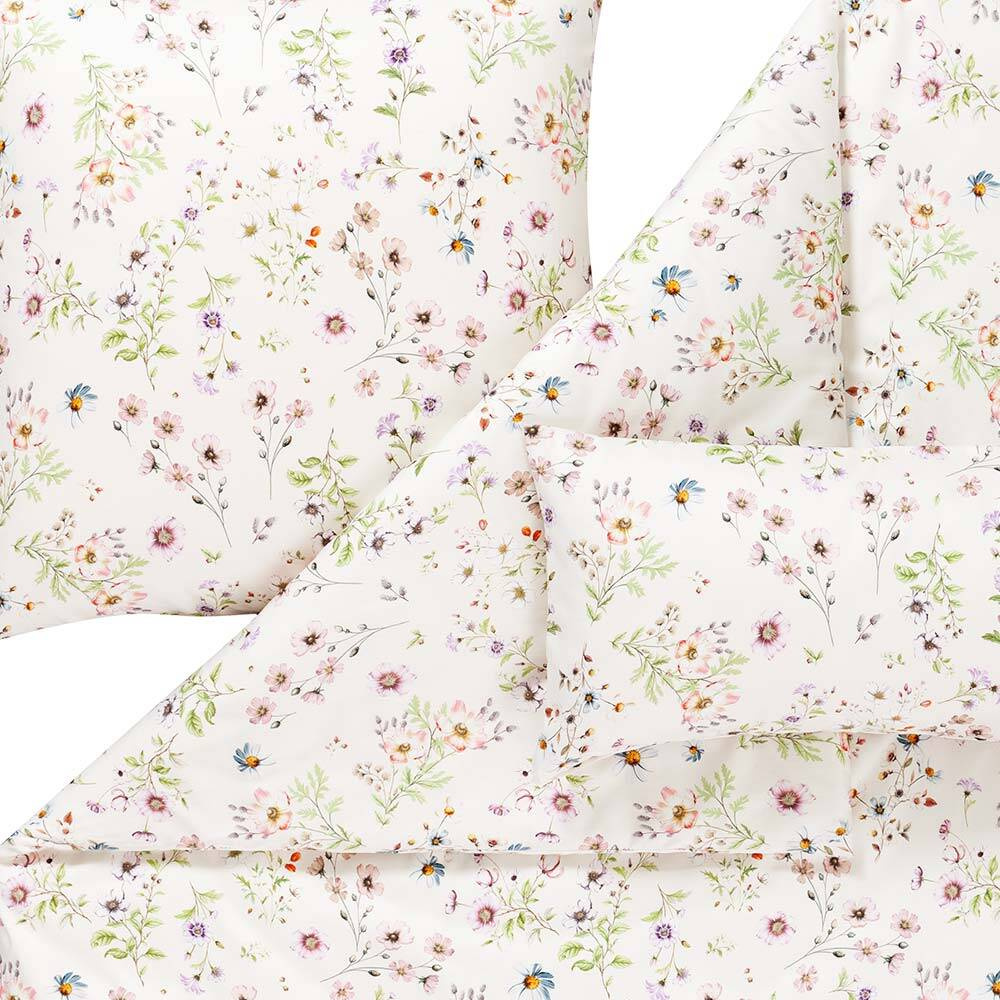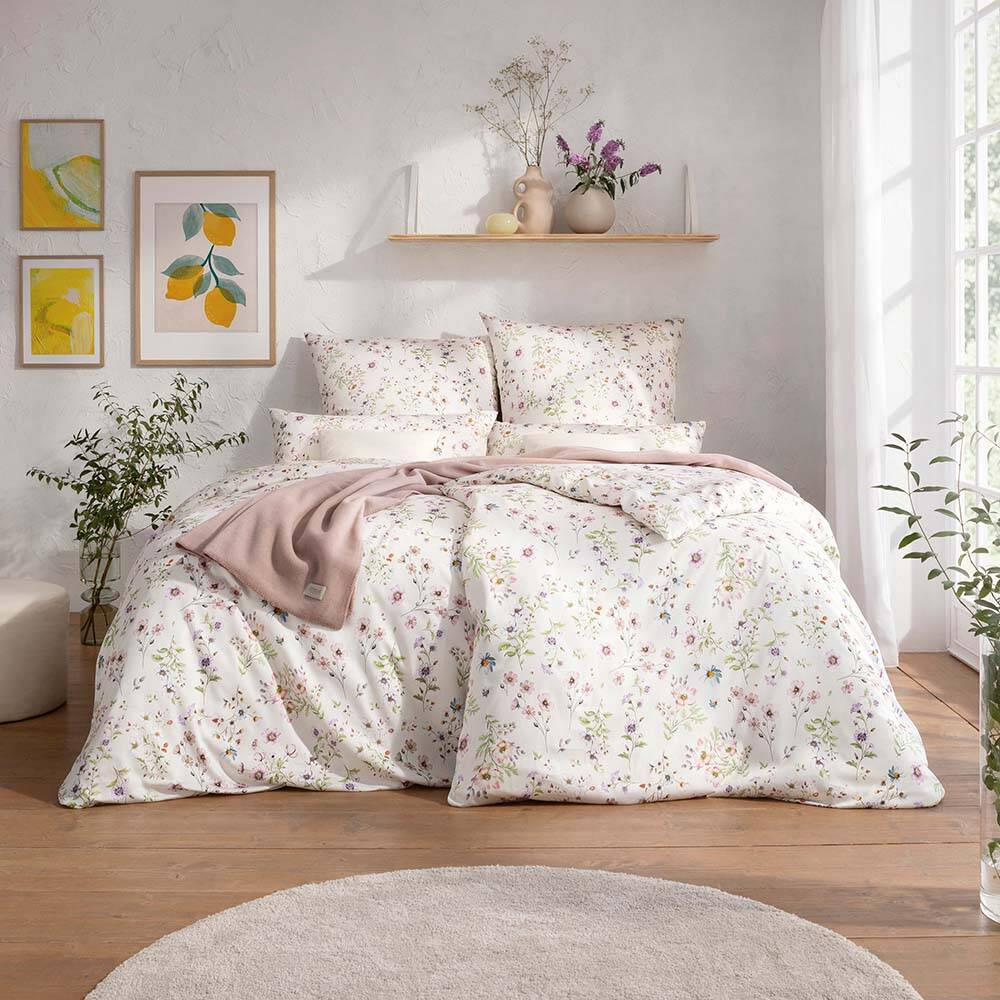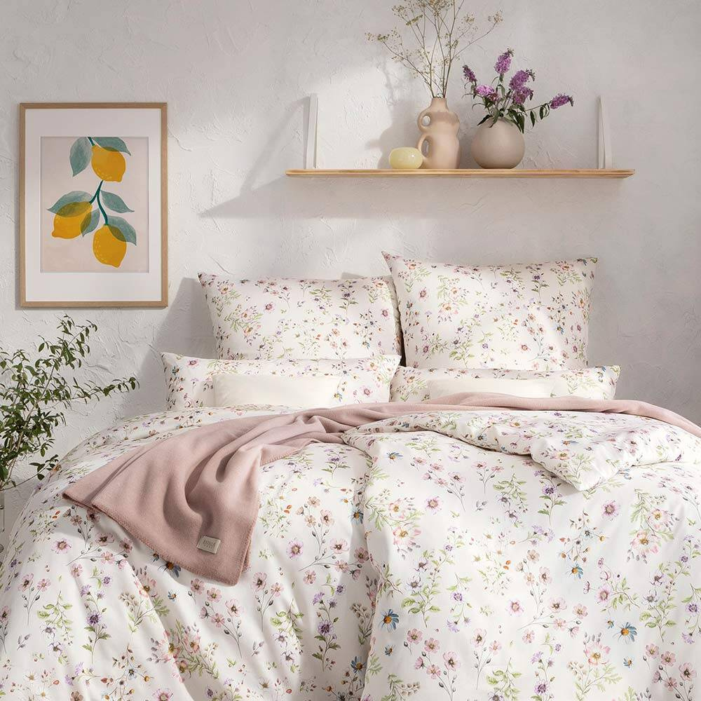 Linia pościeli satynowej Estella Petra z kolekcji Atelier wniesie do Twojej sypialni czystą witalność w postaci delikatnego, kwiatowego wzoru. Pastelowe trawy i kwiaty, zieleń, fiolet i odcienie różu rozwijają się naturalnie na tkaninie barwy kości słoniowej. Całość przywodzi na myśl spacer po ukwieconej, letniej łące. Niemieccy rzemieślnicy wykonali komplet Estella Petra z najczystszej, merceryzowanej bawełny egipskiej o delikatnych włóknach Nm 70/1. Dzięki temu materiał jest wyjątkowo wytrzymały, odporny na rozdarcia i łatwy w pielęgnacji. Nadaje się również do suszenia w suszarce.