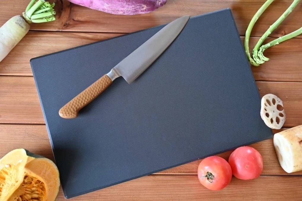Deski do krojenia HASEGAWA z serii FRK dedykowane są przede wszystkim użytkownikom domowym. Tak jak w profesjonalnych produktach, jest to opatentowane połączenie rdzenia z drewna liściastego i elastomerowych okładzin na powierzchniach zewnętrznych. Miękki elastamer idealnie absorbuje uderzenia ostrych noży japońskich oraz przedłuża ich ostrość. Daje też lepszą przyczepność krojonych produktów, dzięki czemu kawałki jedzenia nie przesuwają się po desce, a cięcia są bardziej precyzyjne. Również waga pozostaje zmniejszona o 30-50% w stosunku do tradycyjnych desek drewnianych czy plastikowych.