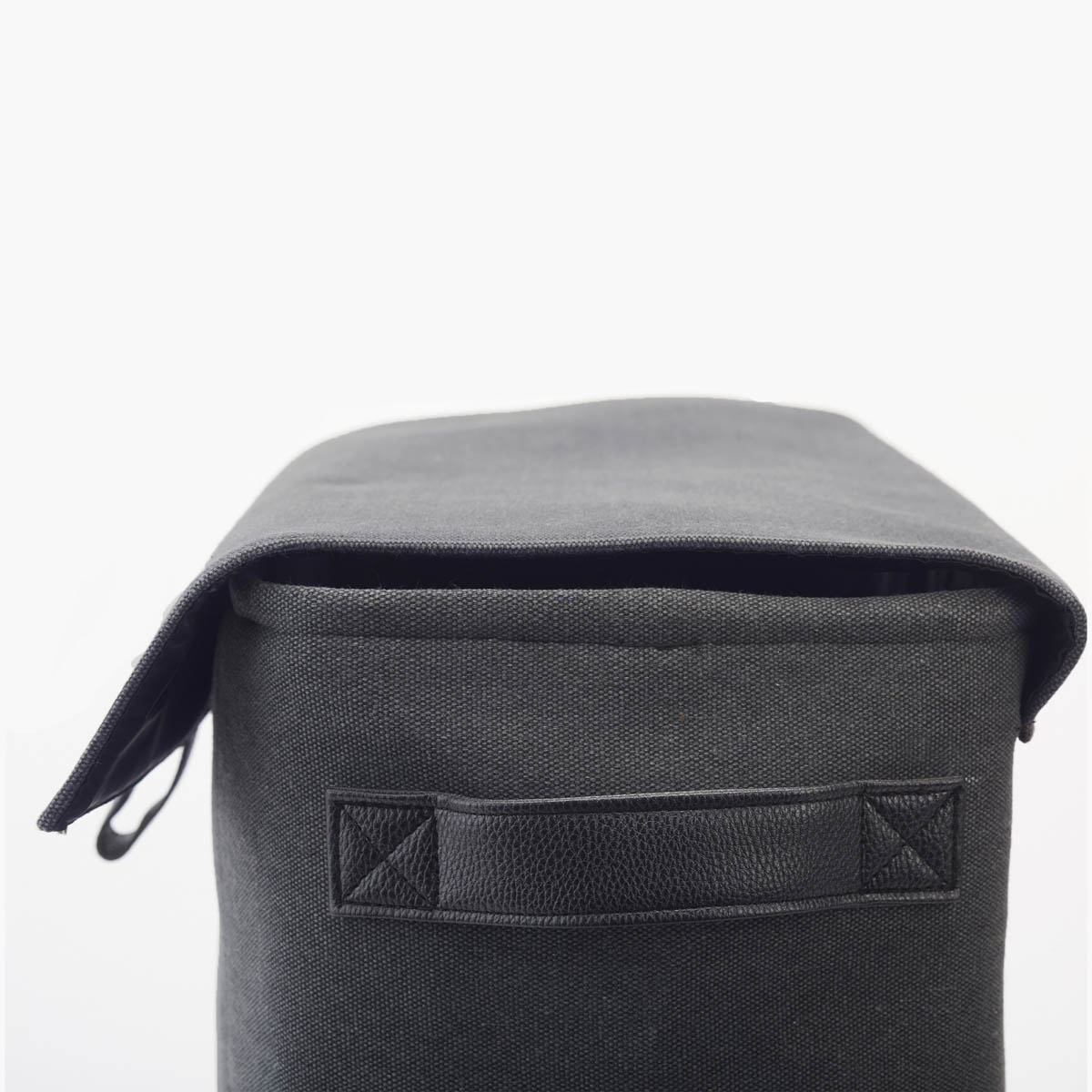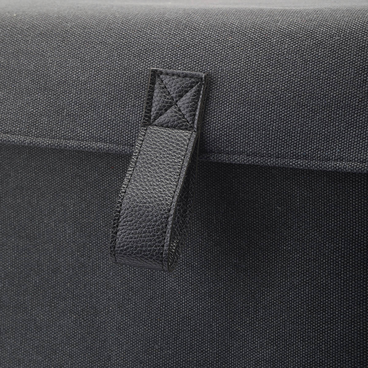 Poręczny kosz na pranie marki Aquanova z klapką i uchwytami z imitacji skóry. Wyposażony w przegrodę na środku, dzięki czemu znajdują się 2 komory.