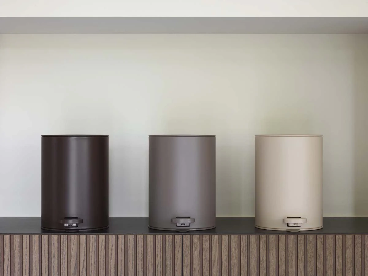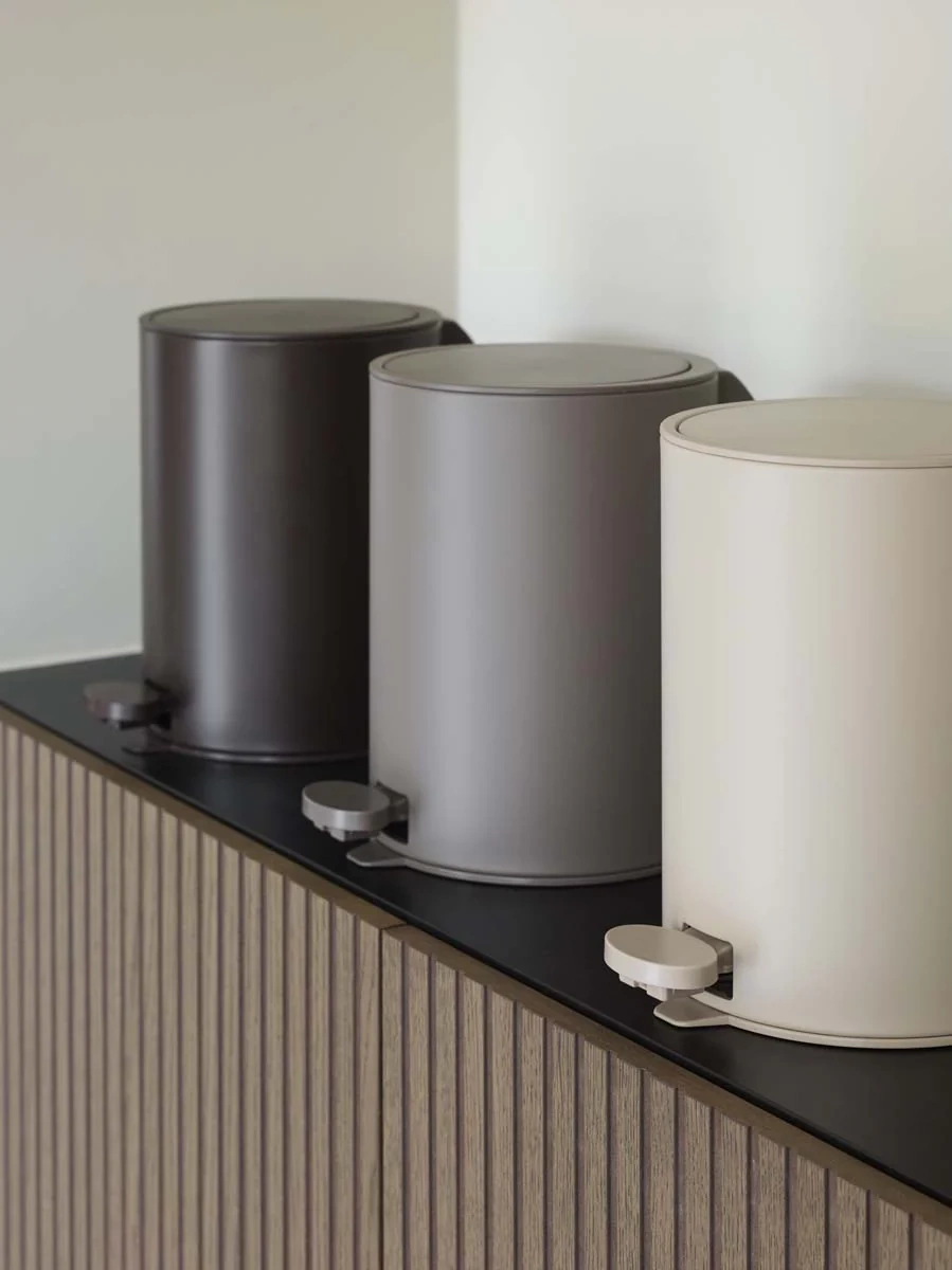 Kosz holenderskiej marki Aquanova przyciąga uwagę designem w stylu vintage, wykonany z barwionej żywicy organicznej z elementami ze stali szlachetnej.