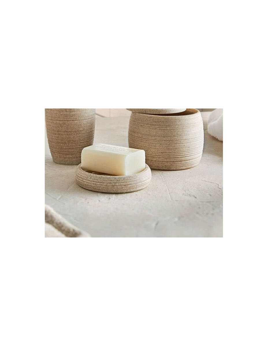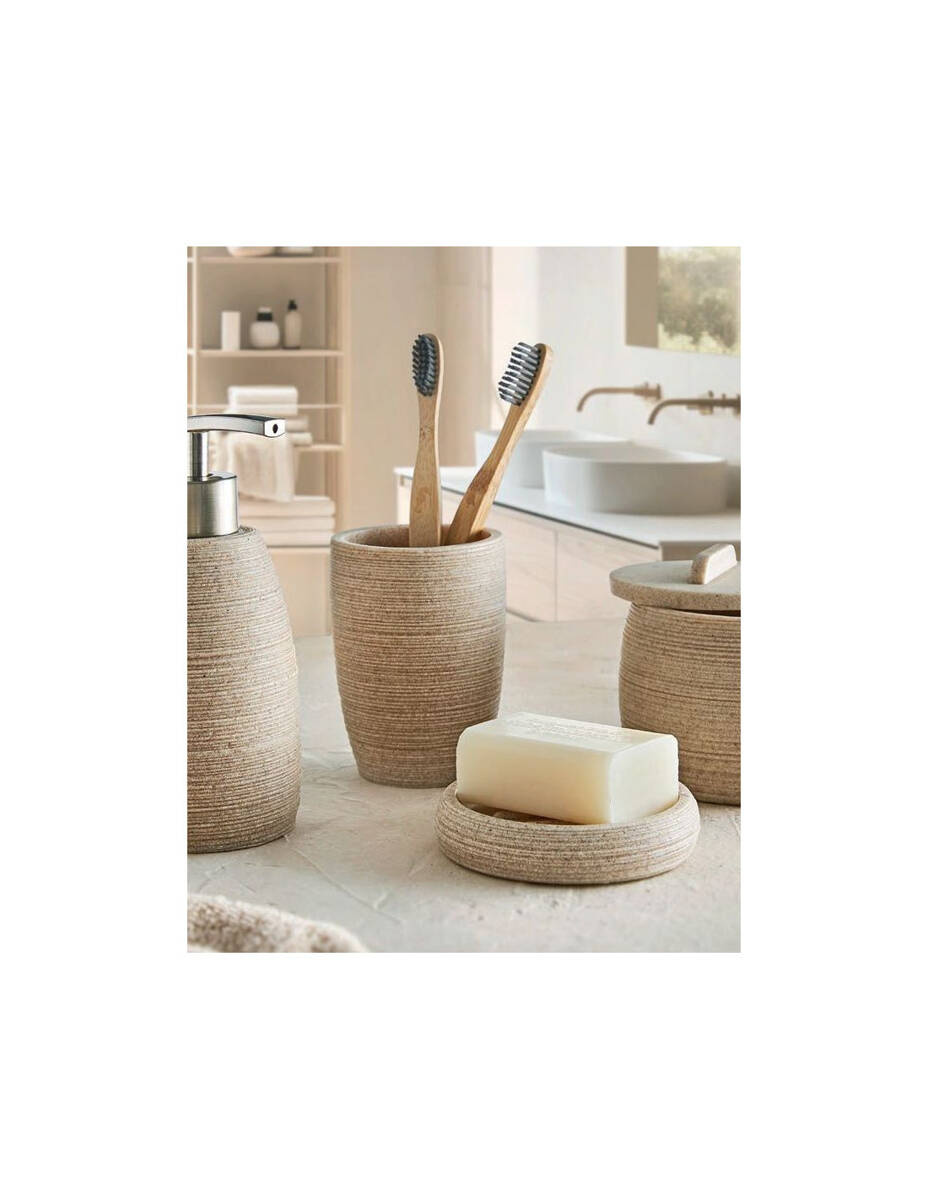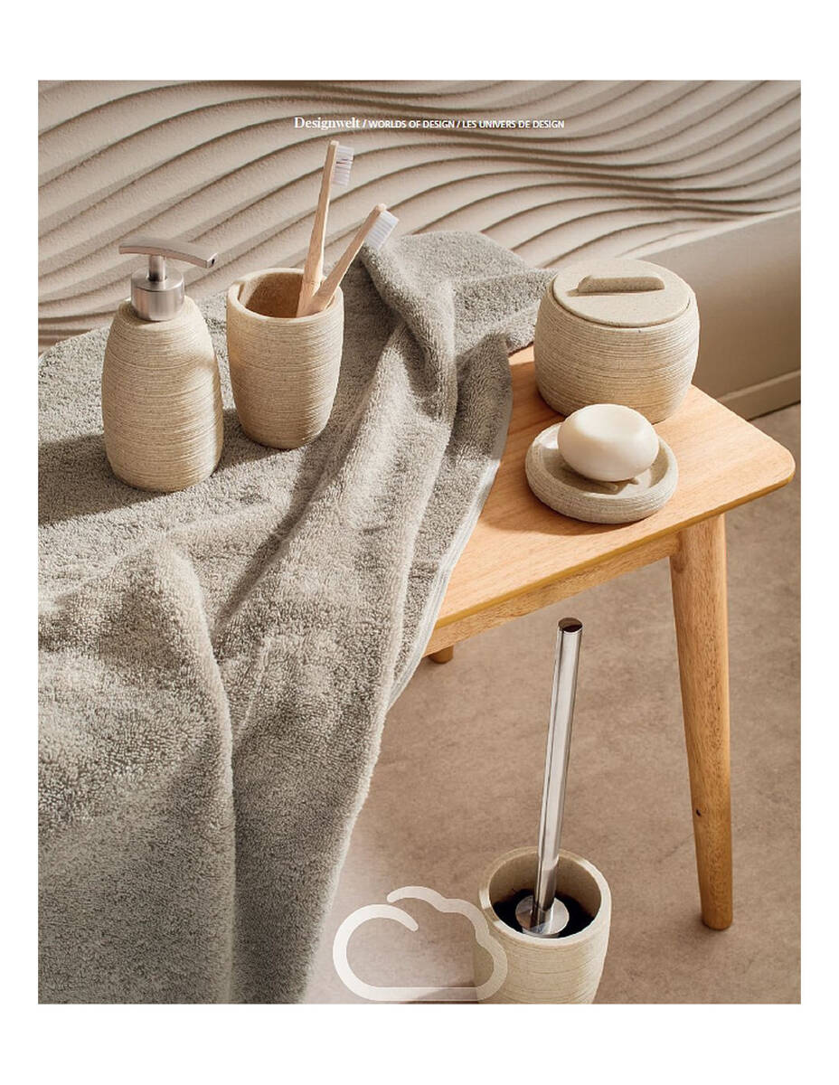 Seria akcesoriów łazienkowych Sand od Kleine Wolke jest wykonana w 51% z recyklingowanej poliżywicy (poliresin) – zgodnie z międzynarodowymi standardami recyklingu.
