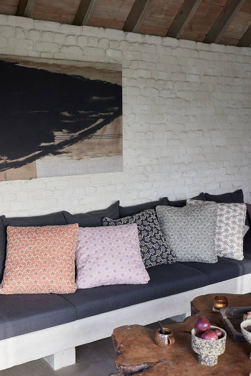 Kwiat śliwy, popularny w sztukach dekoracyjnych Dalekiego Wschodu, jest centralnym elementem tej poszewki. To wzór, który uchwycił istotę uroczego małego kwiatka, składającego się z pięciu wdzięcznych płatków i rzęsistych pręcików. Na poszewce Fleurs odtworzona została jego charakterystyczna sylwetka w postaci haftu. Zrobiony z włóczki wełnianej haft nadaje poszewce subtelności.