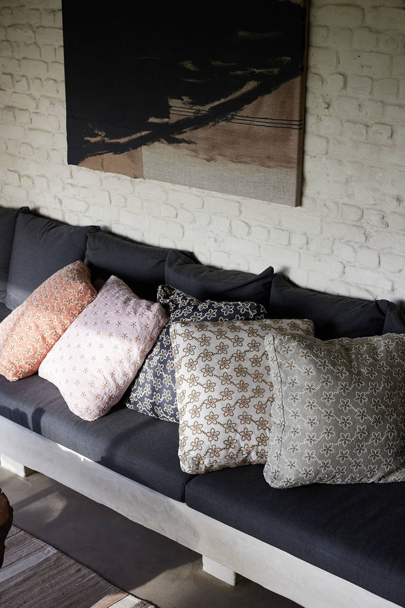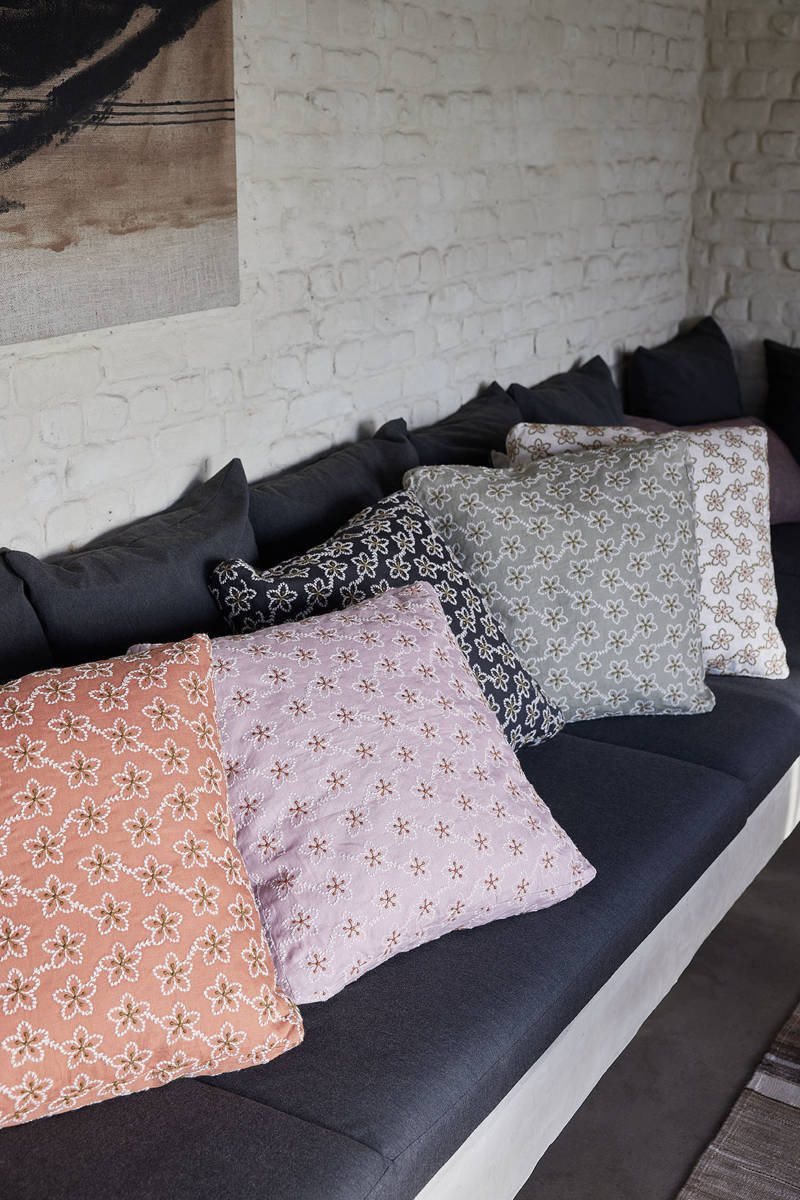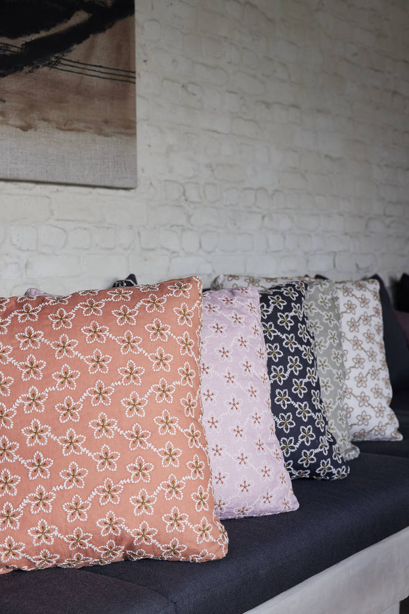 Kwiat śliwy, popularny w sztukach dekoracyjnych Dalekiego Wschodu, jest centralnym elementem tej poszewki. To wzór, który uchwycił istotę uroczego małego kwiatka, składającego się z pięciu wdzięcznych płatków i rzęsistych pręcików. Na poszewce Fleurs odtworzona została jego charakterystyczna sylwetka w postaci haftu. Zrobiony z włóczki wełnianej haft nadaje poszewce subtelności.