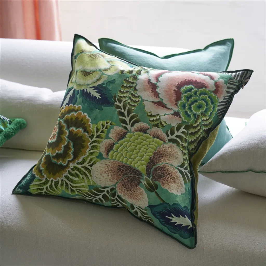 Jeśli pragniesz dodać elegancji i wyjątkowości swojemu wnętrzu, to poduszka dekoracyjna Designers Guild Rose De Damas będzie doskonałym wyborem. To duża, kwadratowa poduszka, na której znajdują się odważne i precyzyjnie namalowane róże, w towarzystwie geometrycznych liści i roślinności.