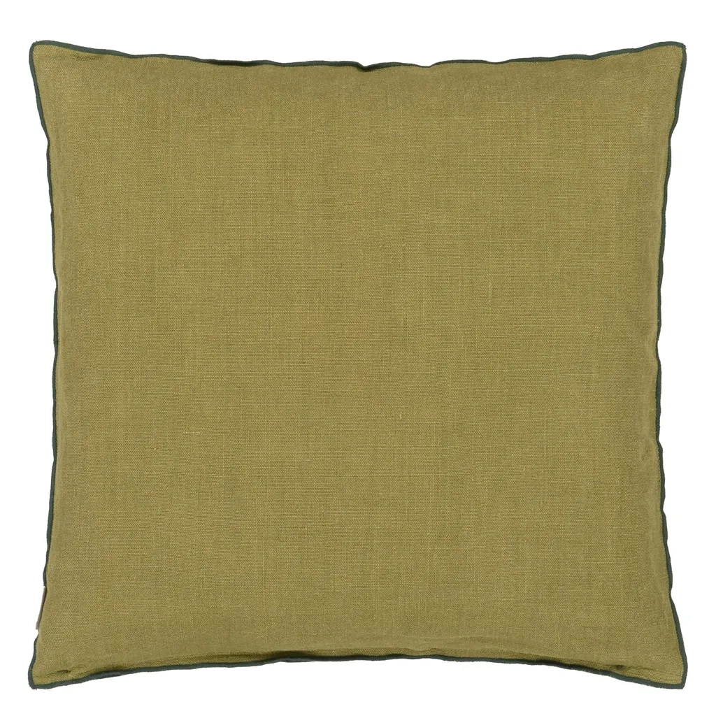 Ta poduszka zachwyca odważnymi, dużymi rysunkami kwiatów, które zostały starannie namalowane i zgeometryzowane. Ich bogate odcienie zieleni tworzą harmonijny i elegancki wzór. Poduszka została cyfrowo wydrukowana na teksturowanej bawełnie, a odwrotna strona ozdobiona jest lnianą tkaniną Brera Lino w odcieniu mchu. Całość jest wykończona niebieskim detalem overlock na wszystkich krawędziach.