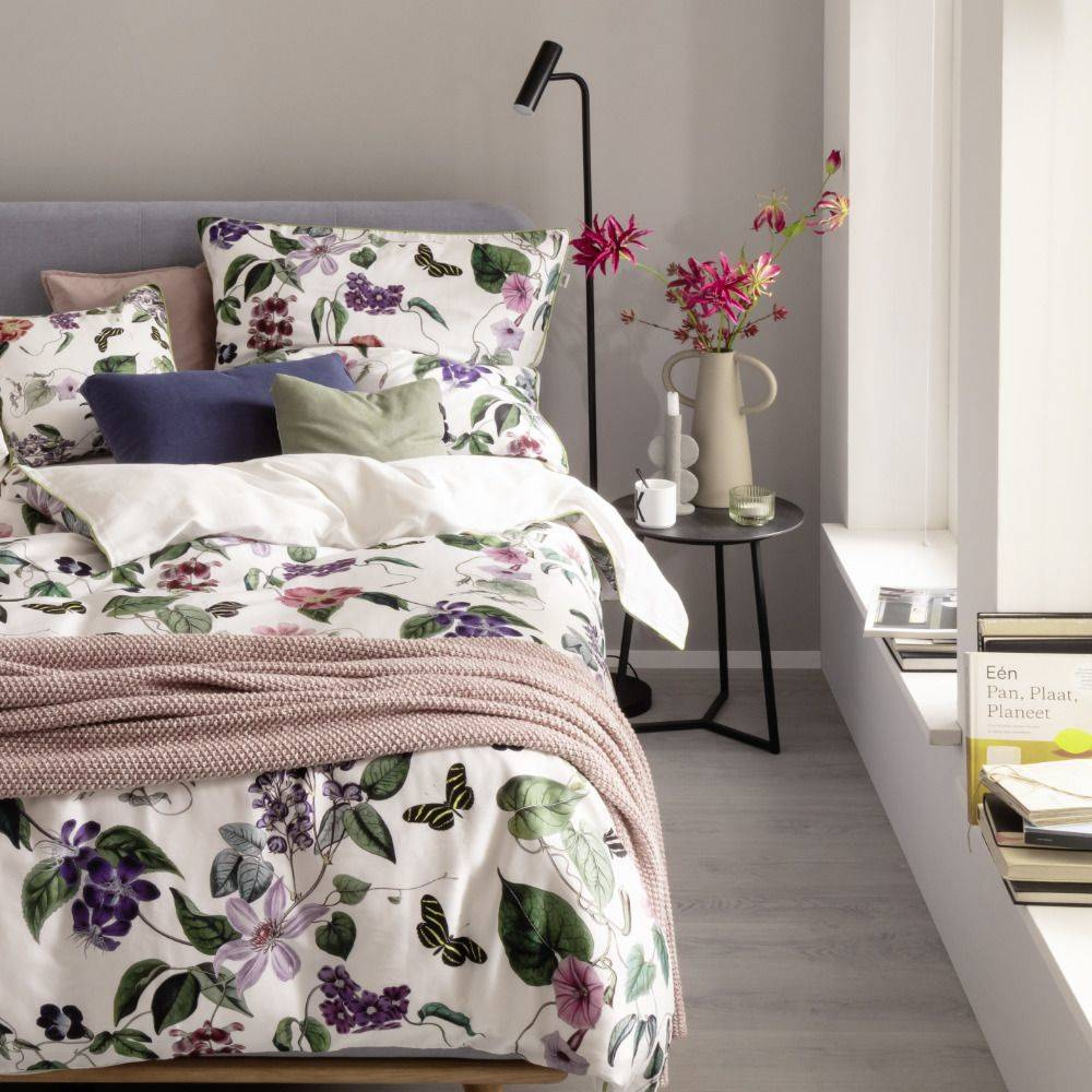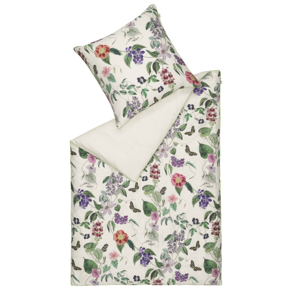 Seria Blossom zachwyca żwawymi motylami i kolorowymi kwiatami spotykającymi się na przyjęciu w ogrodzie. Naturalna bawełna i zielona lamówka. Kolekcja wprowadza jeszcze więcej wiosennej świeżości wewnątrz Twojego domu.