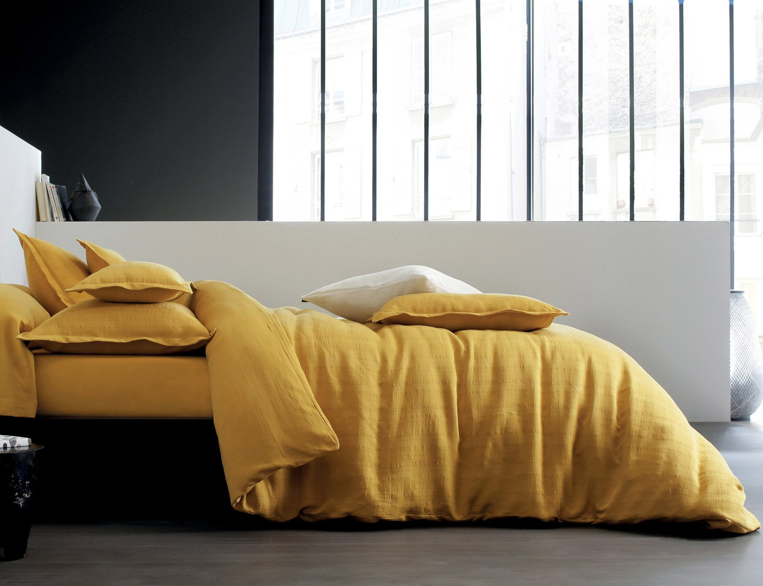 Delhi Soleil z kolekcji Blanc Des Vosges jest elegancką pościelą o splocie żakardowym. Wykonana z mieszanki zmiękczanej bawełny i lnu. Pościel jest uniwersalna i nadaje się na każdą porę roku. Zawartość lnu w składzie nadaje materiałowi przewiewności oraz nie umożliwia rozwoju środowiskom bakterii. Miękkość tkaniny podnosi komfort i jakość snu.