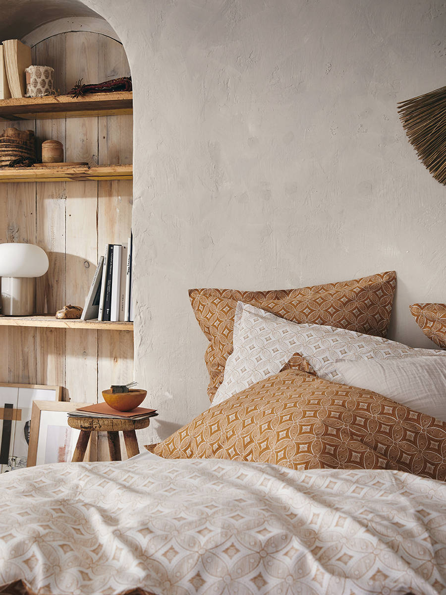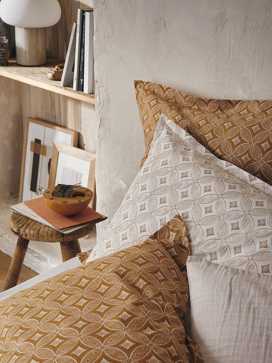 Dzięki wzorom inspirowanym indonezyjskim rzemiosłem, Batik jest ciepłym zaproszeniem do podróży... i do leniuchowania. Zobacz z bliska finezję i kunszt z jakim wykonany został wzór. W zależności od pory roku lub nastroju możesz odwracać pościel i eksponować jej dwie wersje: ciepły i żywy kolor żółty lub nieco spokojniejszą szarość i beż.