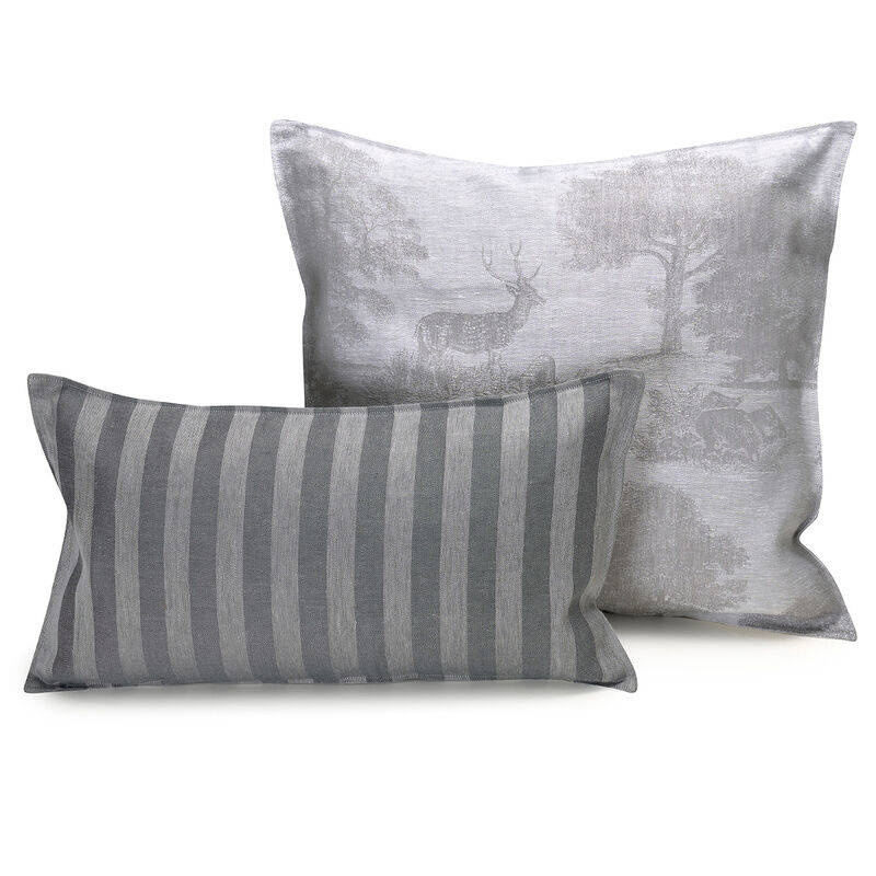 Kolekcja poszewek dekoracyjnych Le Jacquard Français Souveraine zabierze Cię w podróż do serca magicznego i czarującego lasu. To majestatyczna kolekcja, prawdziwa oda dla natury. Pozwól oczarować się tym poszewkom i odśwież swoje wnętrza. Zobacz jak bażanty, dziki, sarny i zające relaksują się w bujnej roślinności.