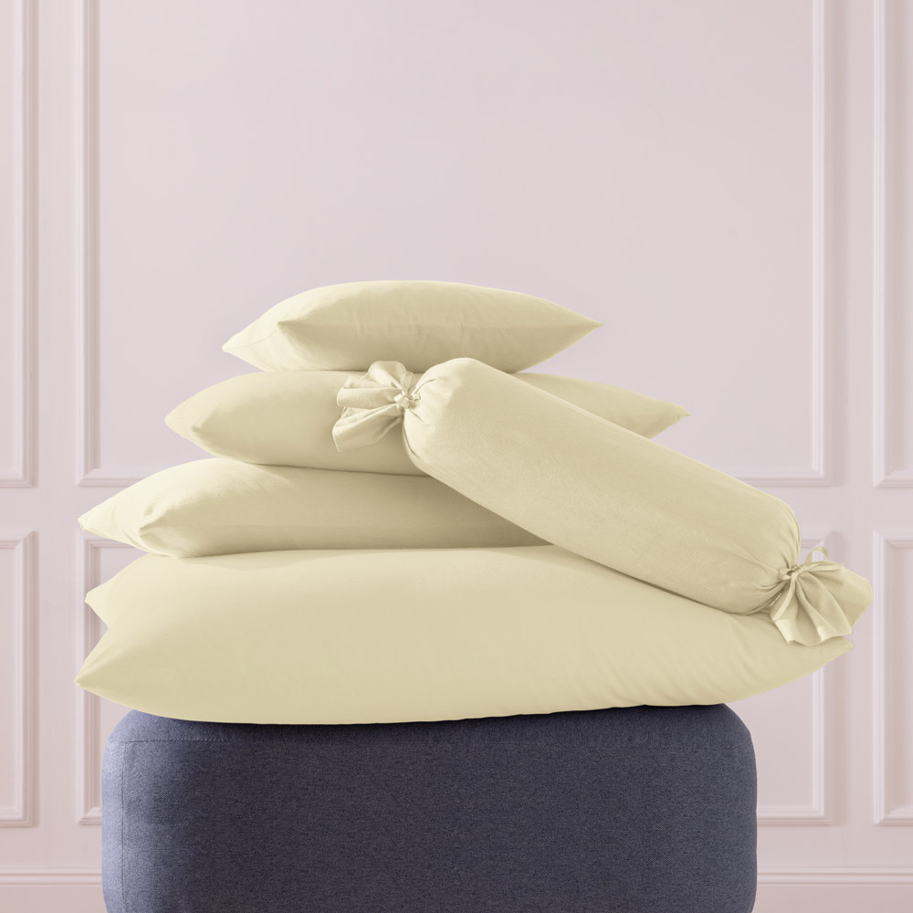 Poszewki Estella Feinjersey Beige wykonano w 100% z czystej bawełny egipskiej. Ich wyjątkowo gęsto tkane oczka zapewniają optymalną wytrzymałość, trwałość oraz równomierną, przyjemną w dotyku fakturę. Wysokiej jakości materiał jest szczególnie przyjazny dla skóry, zachęca do relaksujących wieczorów filmowych na kanapie. Dzięki uniwersalnemu krojowi poszewki Estella Feinjersey Beige idealnie dopasowują się do poduszek, niezmiennie nawet po wielu praniach. Z wyjątkiem praktycznej poszewki na poduszkę typu „pod kark”, z wygodnym sznurkiem do wiązania, wszystkie pozostałe wyposażono w wysokiej jakości zamek błyskawiczny.