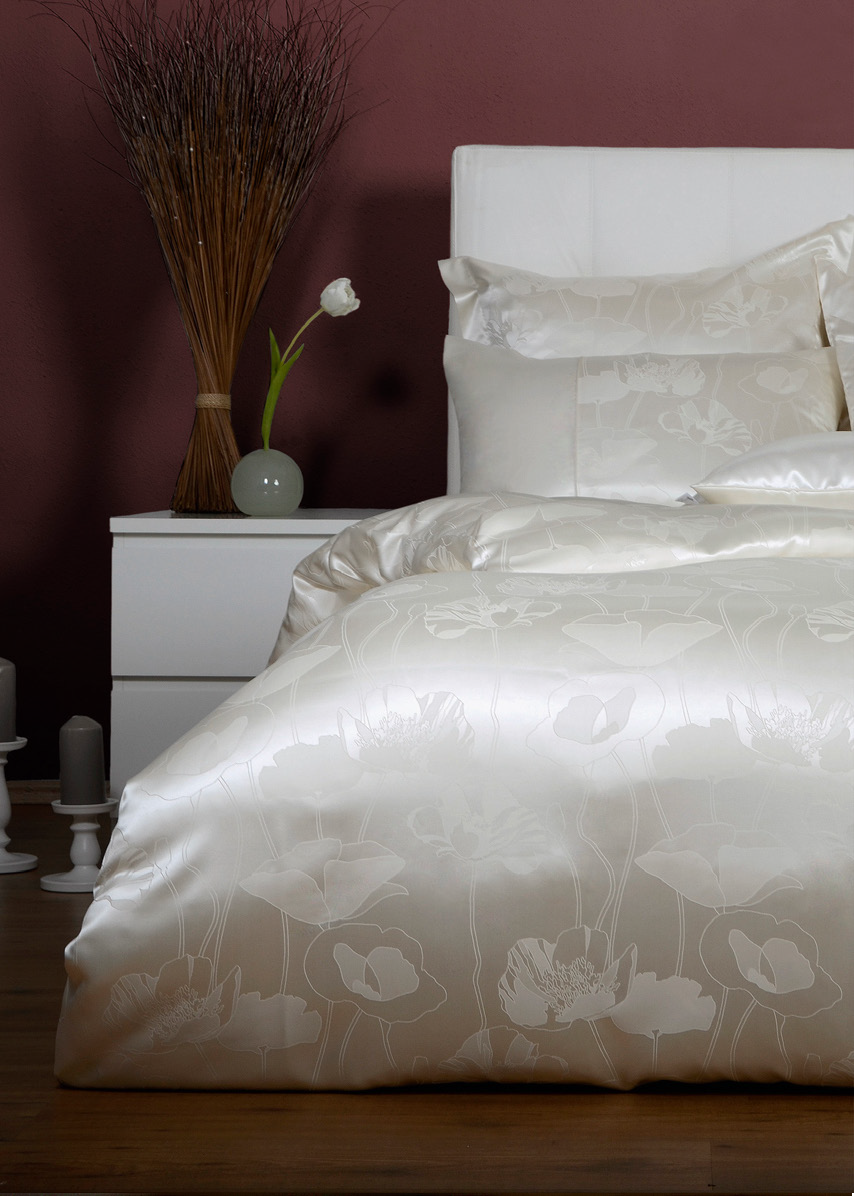 Tkanina jedwabna to najbardziej luksusowy materiał świata. Przez trzy tysiące lat była zazdrośnie strzeżoną tajemnicą chińskich cesarzy. Dopiero w 550 roku dwóm europejskim mnichom udało się przemycić sekret produkcji przędzy na ziemie ukochanego Starego Kontynentu. Od tamtej pory pościele jedwabne mogą znaleźć się także i w naszych domach. Kolekcja Seidenweber Adele łączy w sobie miękkość, gładkość i połyskliwość jedwabiu, a także największy z jego uroków – wrażenie orzeźwiającego chłodu w dotyku latem i otulającego ciepła zimą. Wersja classic oferuje obszycie poszew i poszewek elegancką lamówką. Istnieje możliwość zamówienia pościeli w dowolnym rozmiarze oraz wyboru rodzaju "zamknięcia" - zakładem hotelowym, guzikami, zamkiem błyskawicznym lub klapką.