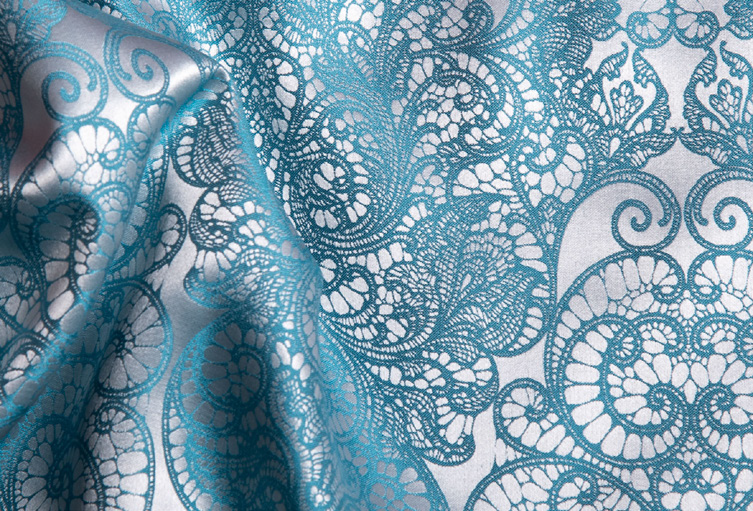 Żakard to bogato zdobiona tkanina o zmiennym splocie atłasowym.