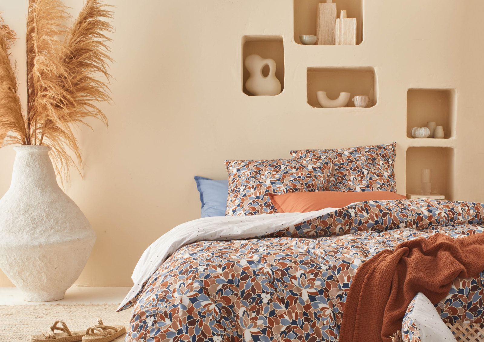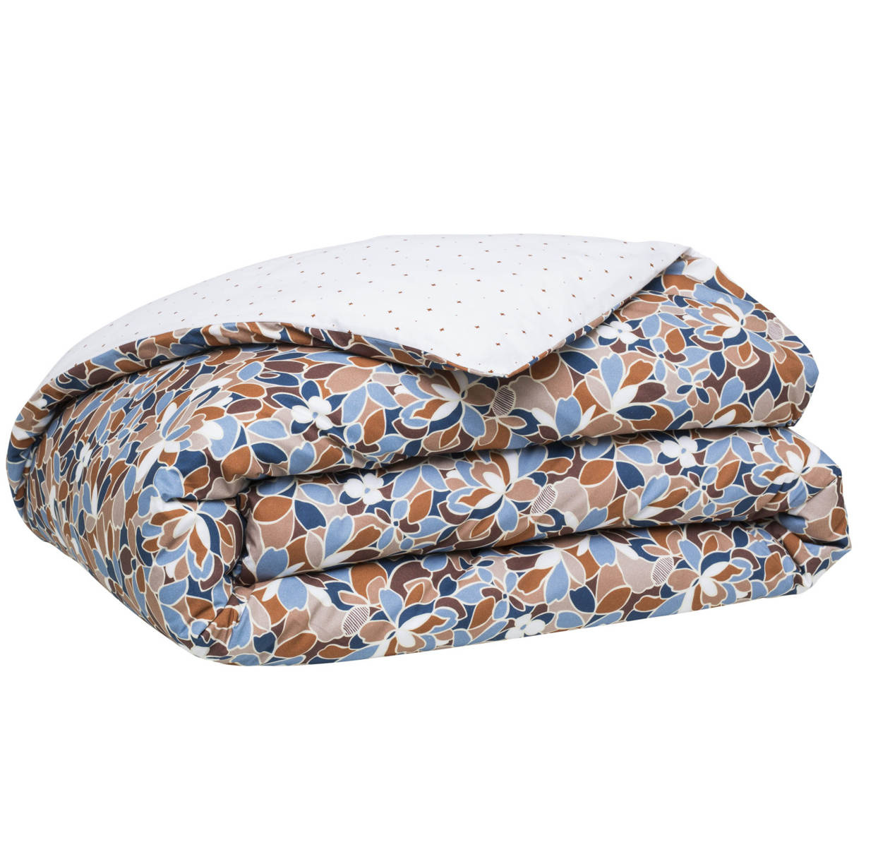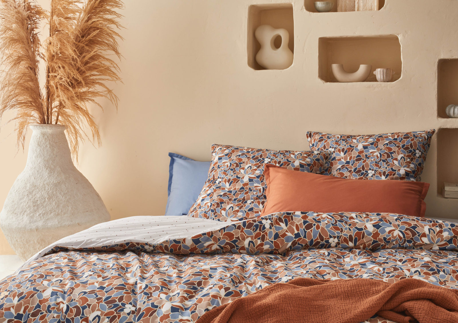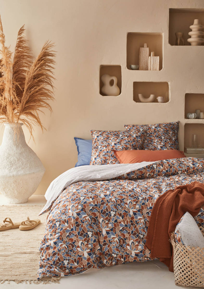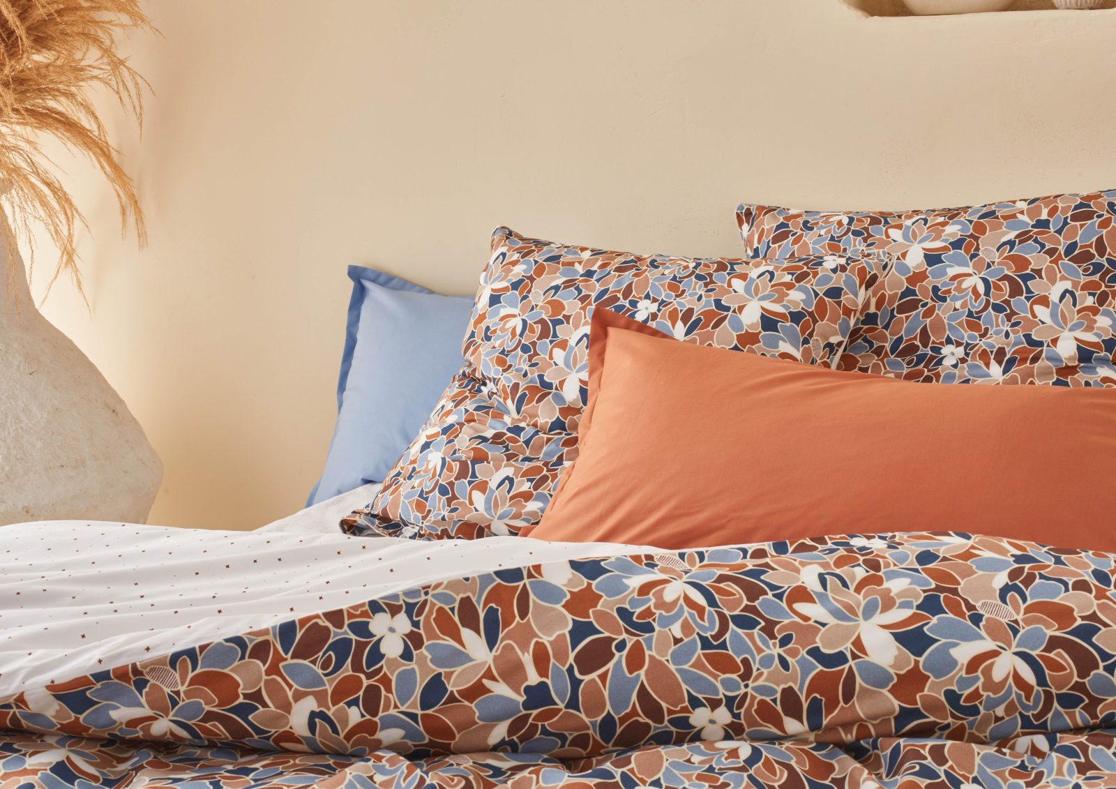 Pościel Cyclades z drukowanej bawełny perkalowej to prawdziwe zaproszenie do podróży z modnymi kolorom i abstrakcyjnym kwiatowym wzorom przywodzącym na myśl śródziemnomorskie mozaiki. Poszewka wykończona plecioną lamówką i gwiaździstym rewersem.