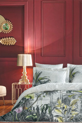 Komplet pościeli satynowej Valeron Halcyon Ecru-Blue