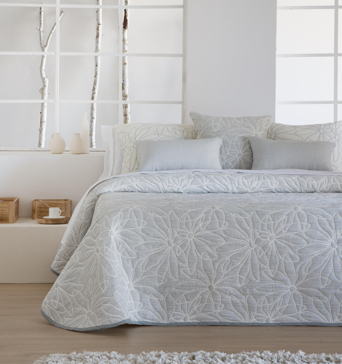 Narzuta JVR Tejidos Nenúfar Gris z serii Pique – elegancka harmonia w Twojej sypialni