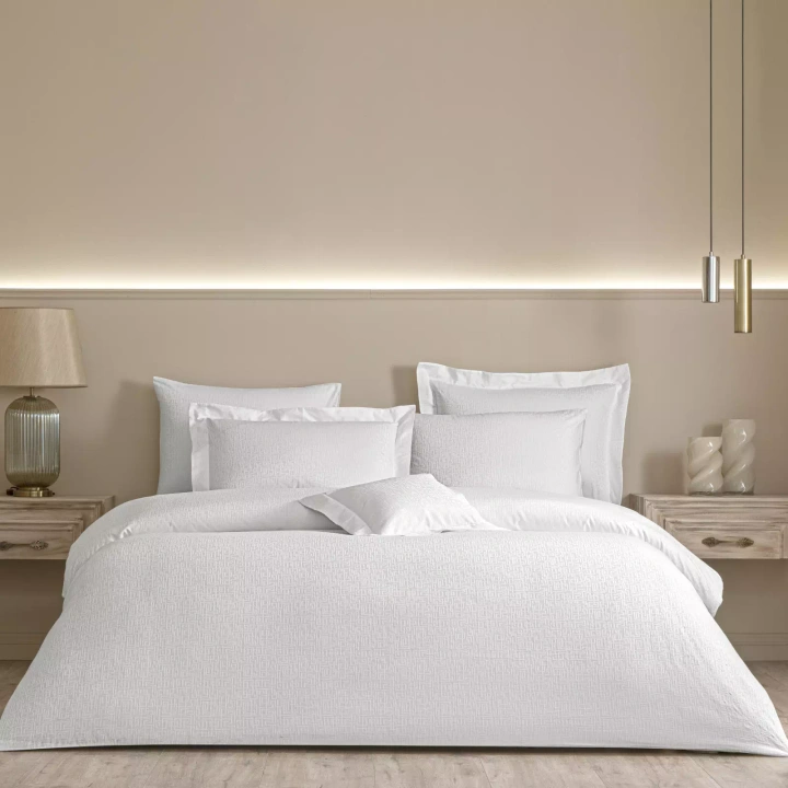 Żakardowe kolekcje Valeron, w tym modele w odcieniach jasnej szarości i bieli, powstają z naturalnej bawełny o bardzo gęstym splocie (nawet 310–675 TC w zależności od linii), co zapewnia połączenie miękkości, wytrzymałości oraz eleganckiej, lekko wytłaczanej faktury. Wzór pojawia się w samym splocie tkaniny, a nie jako nadruk, dzięki czemu nie ściera się i pozostaje widoczny nawet po wielu praniach.