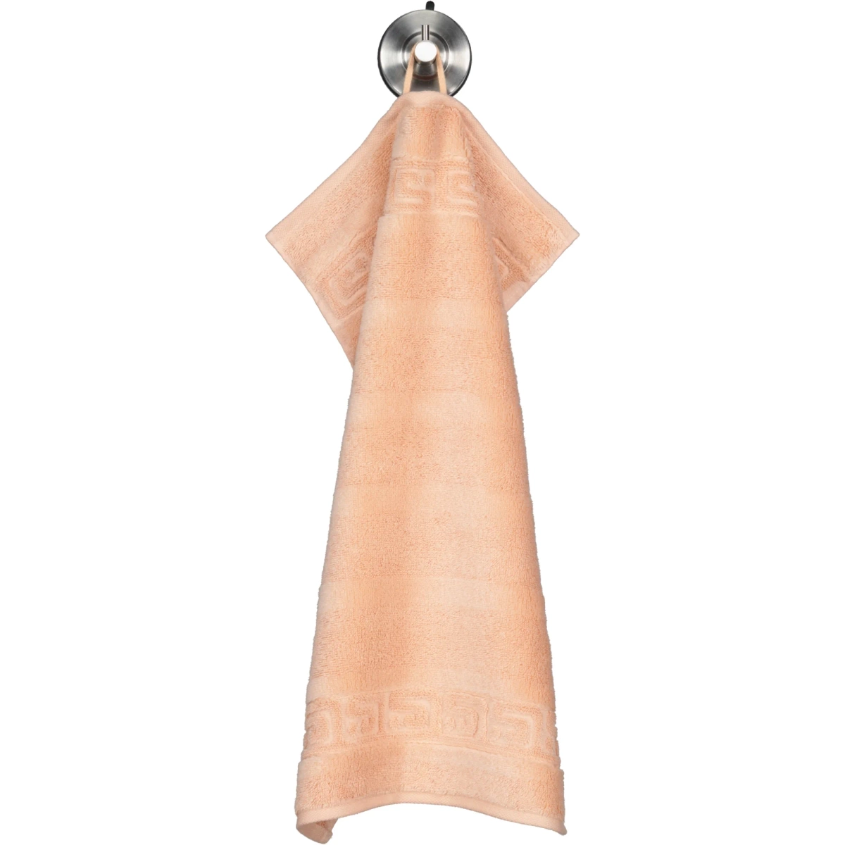 Ręcznik Cawö Noblesse Greek łączy gęste, miękkie frotte z eleganckim, geometrycznym wykończeniem inspirowanym greckim motywem. Na pierwszy rzut oka widać ład i symetrię, które porządkują wygląd łazienki i dodają jej spokojnej, ponadczasowej elegancji. To propozycja dla osób, które cenią czystą formę, naturalny materiał i wyraźne poczucie jakości w codziennym użyciu.
