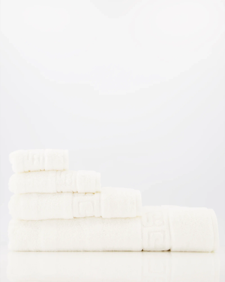 Bordiura Greek biegnąca wzdłuż krawędzi nadaje całości charakteru i podkreśla równe linie ręcznika. Starannie wykonane obszycia utrzymują brzegi w nienagannym stanie, a wszyty uchwyt ułatwia codzienne zawieszanie i porządkowanie przestrzeni. Gładka, jednolita powierzchnia frotte prezentuje się estetycznie na wieszaku i w ułożonych stosach na półce.
