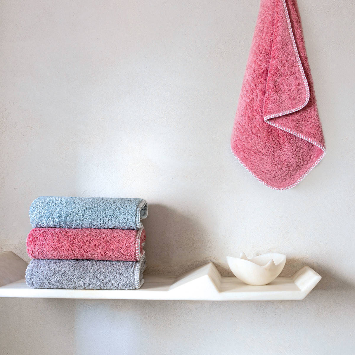 Ręczniki Evora są niezwykle miękkie dzięki wyjątkowej jakości bawełnie, która gwarantuje pełny komfort. Ręczniki wykończone zostały białym ściegiem kocowym, wstępnie wyprane i wstępnie obkurczone, aby uzyskać większą chłonność. Dostępne w 3 żywych kolorach, które można łączyć z innymi produktami Graccioza.