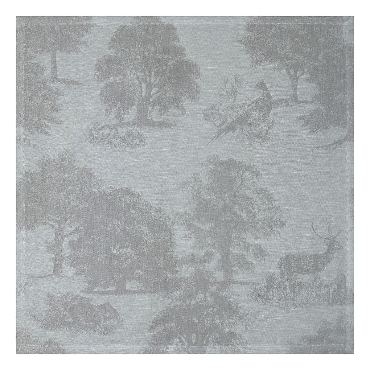 Ta w 100% lniana oferta obrusów, serwetek, podkładek stołowych i bieżników prezentują panoramę zieleni, przywołując obrazy lasu w stylu Toile de Jouy. Delikatne wzory przedstawiające bażanty, dziki, sarny i zające w otoczeniu bujnej roślinności dodają tej kolekcji wyjątkowego uroku i elegancji.