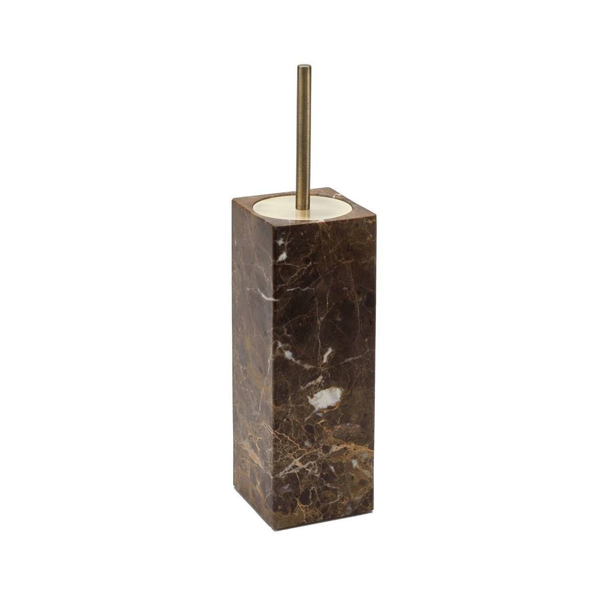 Absolutnie wyjątkowa, elegancka szczotka do WC, wykonana z marmuru w kolorze brazowym z elementami ze stali szlachetnej o satynowym wykończeniu.