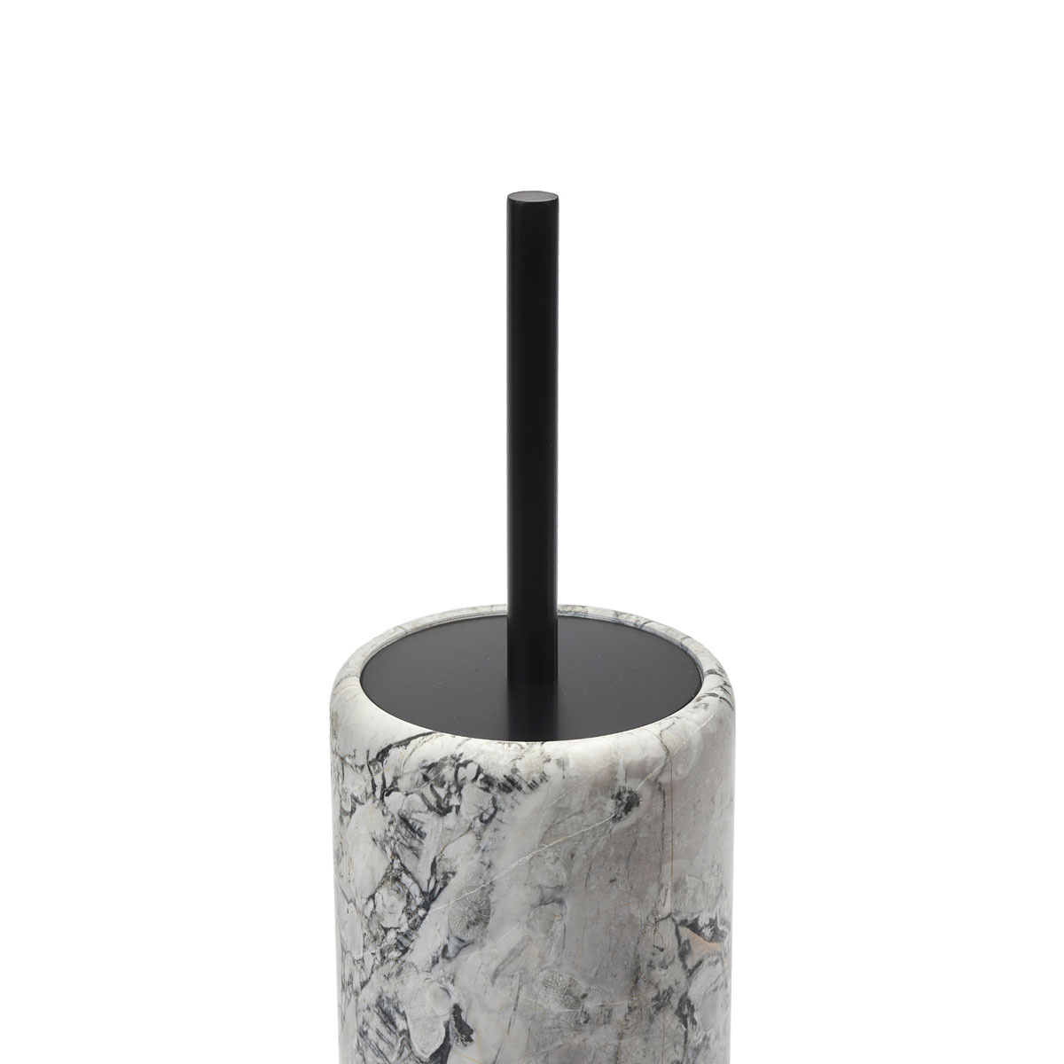 Absolutnie wyjątkowa, elegancka szczotka do WC, wykonana z kamienia w kolorze czarnym z elementami ze stali nierdzewnej/stopu cynku o satynowym wykończeniu.