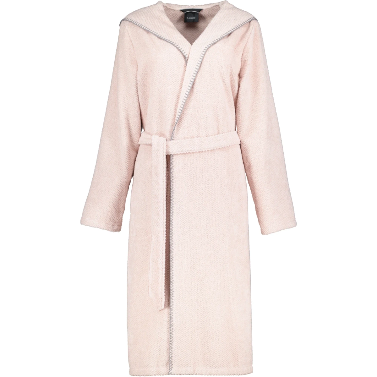 Szlafrok damski z kapturem marki Cawö zachwyca eleganckim wyglądem i przemyślanymi detalami. Duży kaptur zapewnia przytulność i ciepło, a pasek pozwala na indywidualne dopasowanie. Ozdobny szew wzdłuż krawędzi nadaje szlafrokowi stylowy wygląd i podkreśla jego elegancję. Dzięki długiemu krojowi zapewnia dodatkowy komfort i gwarantuje ogólne uczucie przytulności po kąpieli lub saunie.