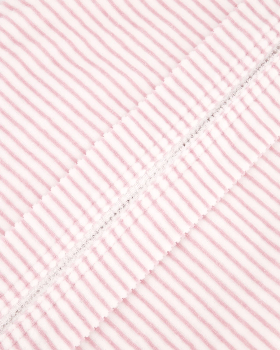 Model Structure posiada praktyczne, boczne kieszenie wszyte w sposób umożliwiający noszenie ulubionych drobiazgów przy sobie – telefon, ulubiony balsam czy klucze znajdą tu swoje miejsce. Stylowa, cienka ozdobna bordiura wzdłuż wykończenia kimono i rękawów dodaje szlafrokowi jeszcze więcej uroku. Atrakcyjny wzór, który łączy efektowne pasy z klasycznym gładkim tłem, sprawia, że całość prezentuje się szlachetnie i niebanalnie. Krótka długość idealnie nadaje się na cieplejsze dni czy podróże, podkreślając zgrabność sylwetki oraz kobiecy charakter fasonu.