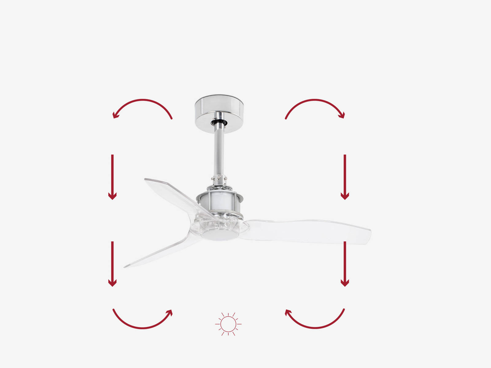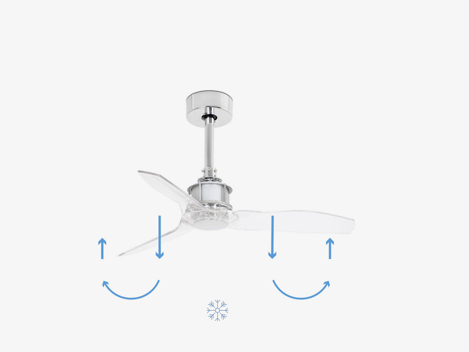 Dzięki funkcji odwracania kierunku obrotów możesz zmienić kierunek łopatek wentylatora i używać go zarówno latem, jak i zimą. W wakacyjne miesiące pomoże stworzyć przyjemną chłodzącą atmosferę, natomiast w zimowe poprawi wydajność systemu ogrzewania obiegiem ciepłego powietrza gromadzącego się przy suficie.