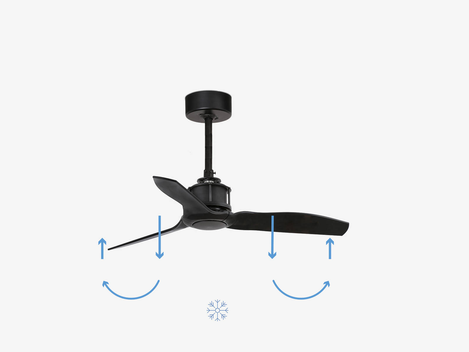Dzięki funkcji odwracania kierunku obrotów możesz zmienić kierunek łopatek wentylatora i używać go zarówno latem, jak i zimą. W wakacyjne miesiące pomoże stworzyć przyjemną chłodzącą atmosferę, natomiast w zimowe poprawi wydajność systemu ogrzewania obiegiem ciepłego powietrza gromadzącego się przy suficie.