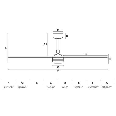 Należy pamiętać o wyborze odpowiedniego rozmiaru wentylatora, biorąc pod uwagę wielkość pomieszczenia. Faro Barcelona Punt o rozmiarze "M" jest idealny do pomieszczeń o powierzchni od 13 do 17,6 m².