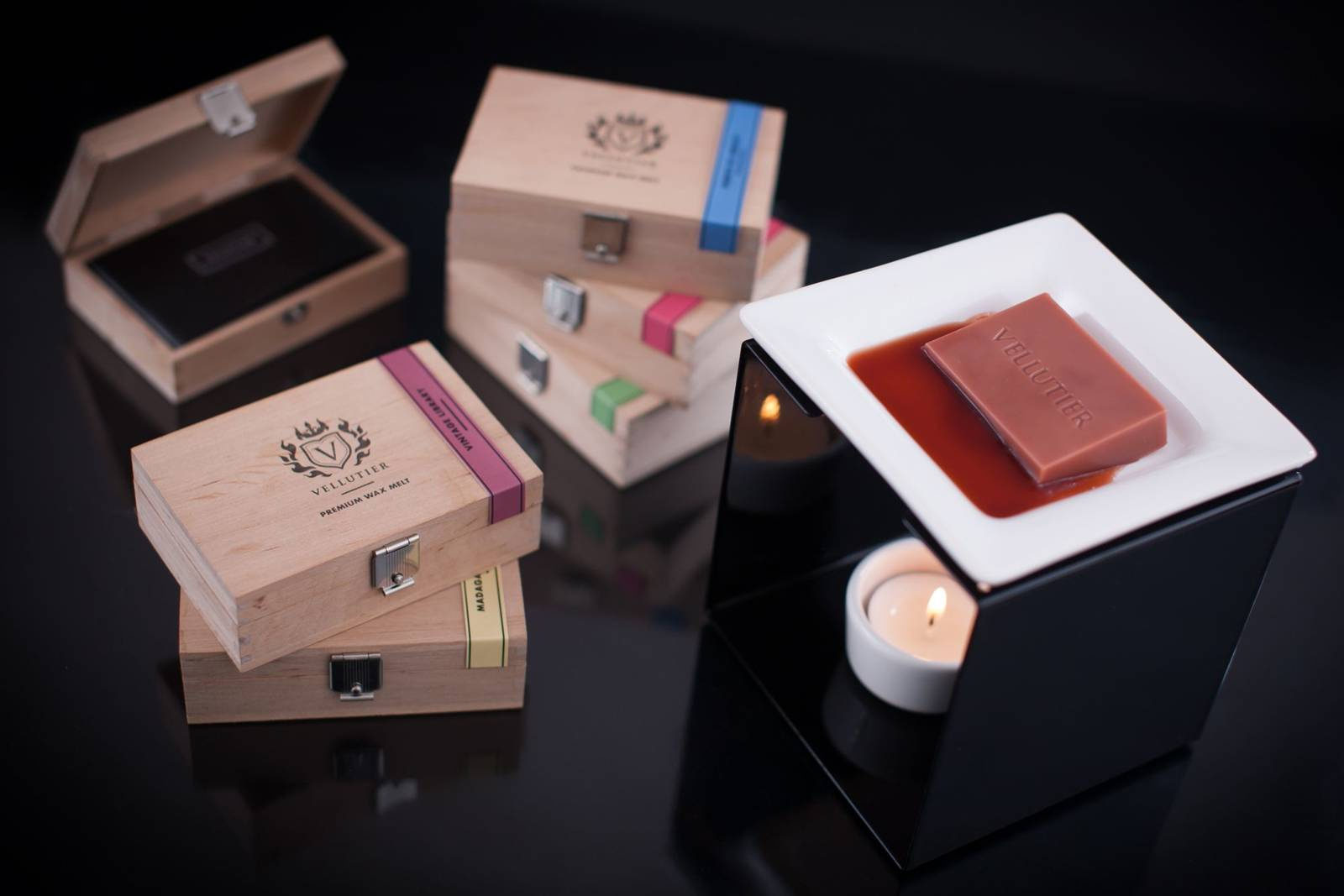Marka Vellutier to historia marzeń o odnalezieniu prawdziwych klejnotów życia, lśniących w otaczającej nas szarej rzeczywistości niczym płomienie świecy. Dzięki pełnej pasji pracy genialnych kompozytorów zapachów, mistrzów rzeźbienia w drewnie oraz wirtuozów kształtowania szkła pościg za doskonałością dobieg końca. Są nim małe dzieła sztuki, esencje dalekich miejsc oraz odległych czasów, zamknięte w przezroczystej tafli, bawełnianym knocie i aksamitnym wosku.